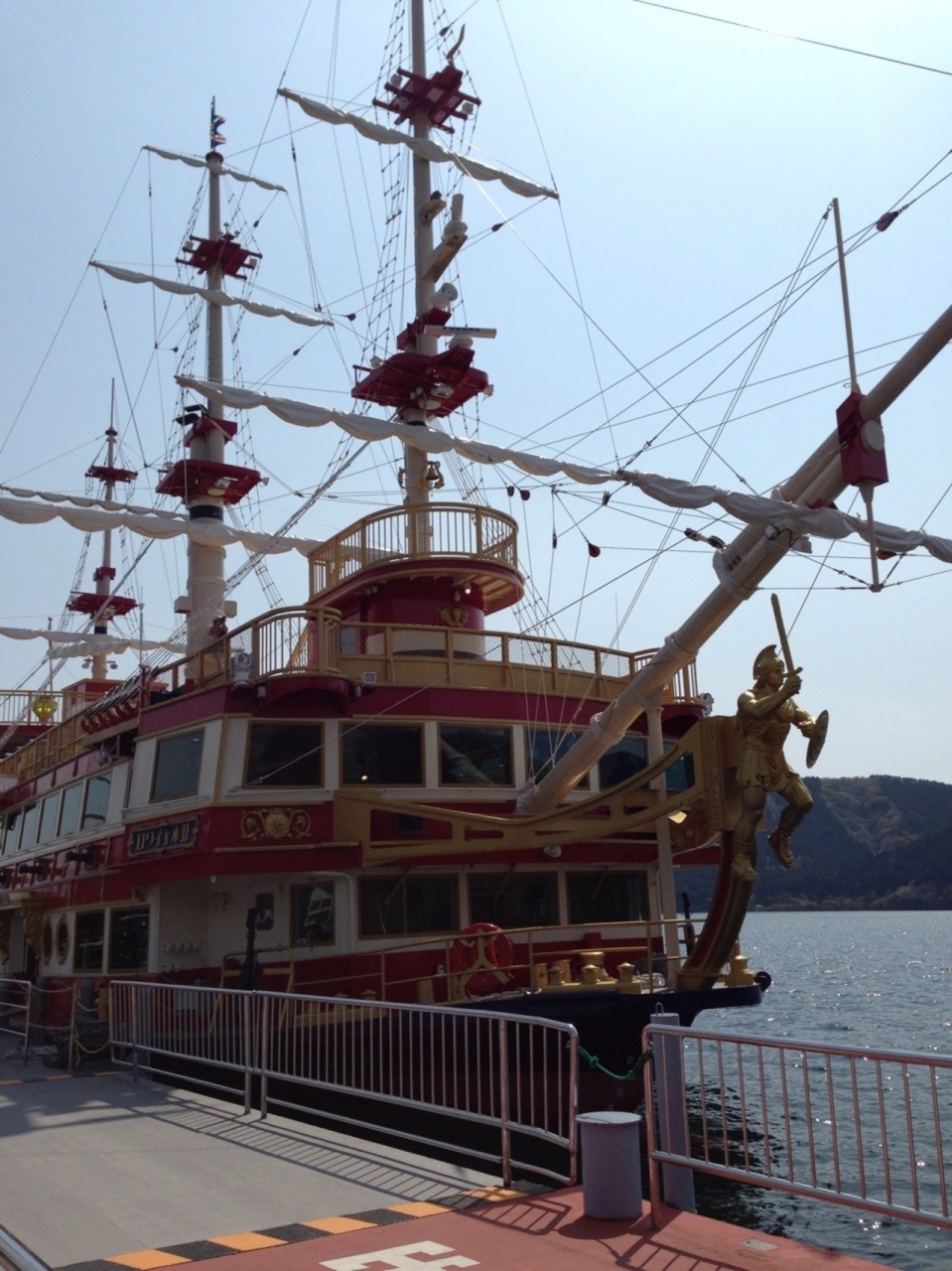 芦ノ湖のクルーズ船に乗船しました。バスやロープウェイなど様々な乗り物に乗るルートの中での船はまた違った感覚で、とてもゆったりしたものでした。どこも人が多く、船も混雑していましたが、芦ノ湖の景色と風が心地よかったです。