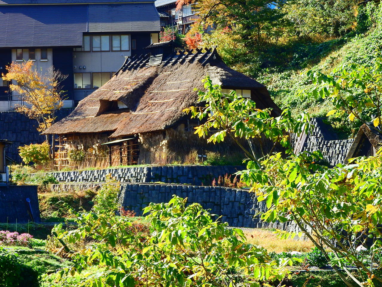 多層民家を残す集落です。当時の写真をみると、もう少し保存が早ければ白川郷にも負けないような観光地になったのにと思うと、やや残念な気がします。元々は湯殿山に行く街道沿いにあった集落で、今でも当時の六十里越街道が残っており、トレッキングが開催されています。有名な七ツ滝もこの集落の上の方にあります。豪雪地帯としても有名ですが、秋の紅葉も綺麗でした。