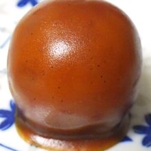 直径3センチ程の小さな球状の饅頭。みたらし団子に見えなくもない。