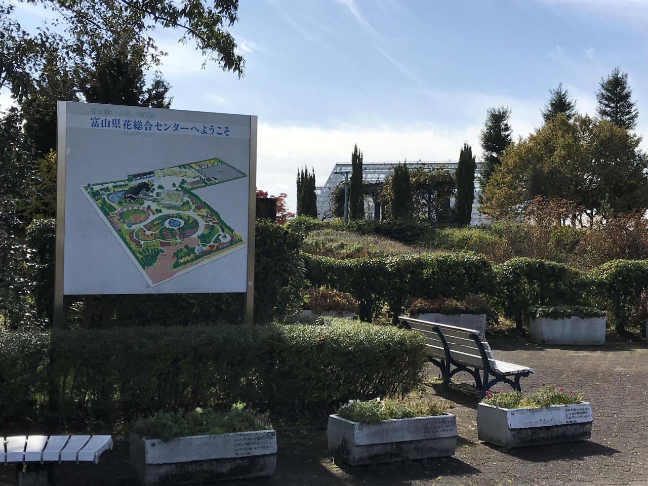 富山県の花の栽培に関することがいっぱいです。以前は夏前に来たので園内のモデルガーデンはお花がいっぱいでしたが秋口はちょっと寂しい印象でした。温室では一年中見頃のお花の案内をされていて、熱帯の植物らしい花が咲いていました。チューリップの咲く春ごろの季節がお薦めらしいです。