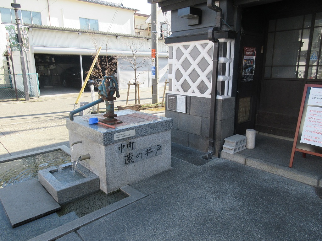 松本の中町通りを散策し、大学いもを食べ歩きしたのですが、食べた後で手についたタレを洗おうと見まわした際に目に留まったのがこちらの井戸。手汲み式のポンプで、簡単に手を洗った後で試しに口に含んだのですが、これが驚くほど美味しく感動しました。その辺のお店で売っているミネラルウォーターなど、こちらの井戸に比べると足元にも及ばないと思いました。