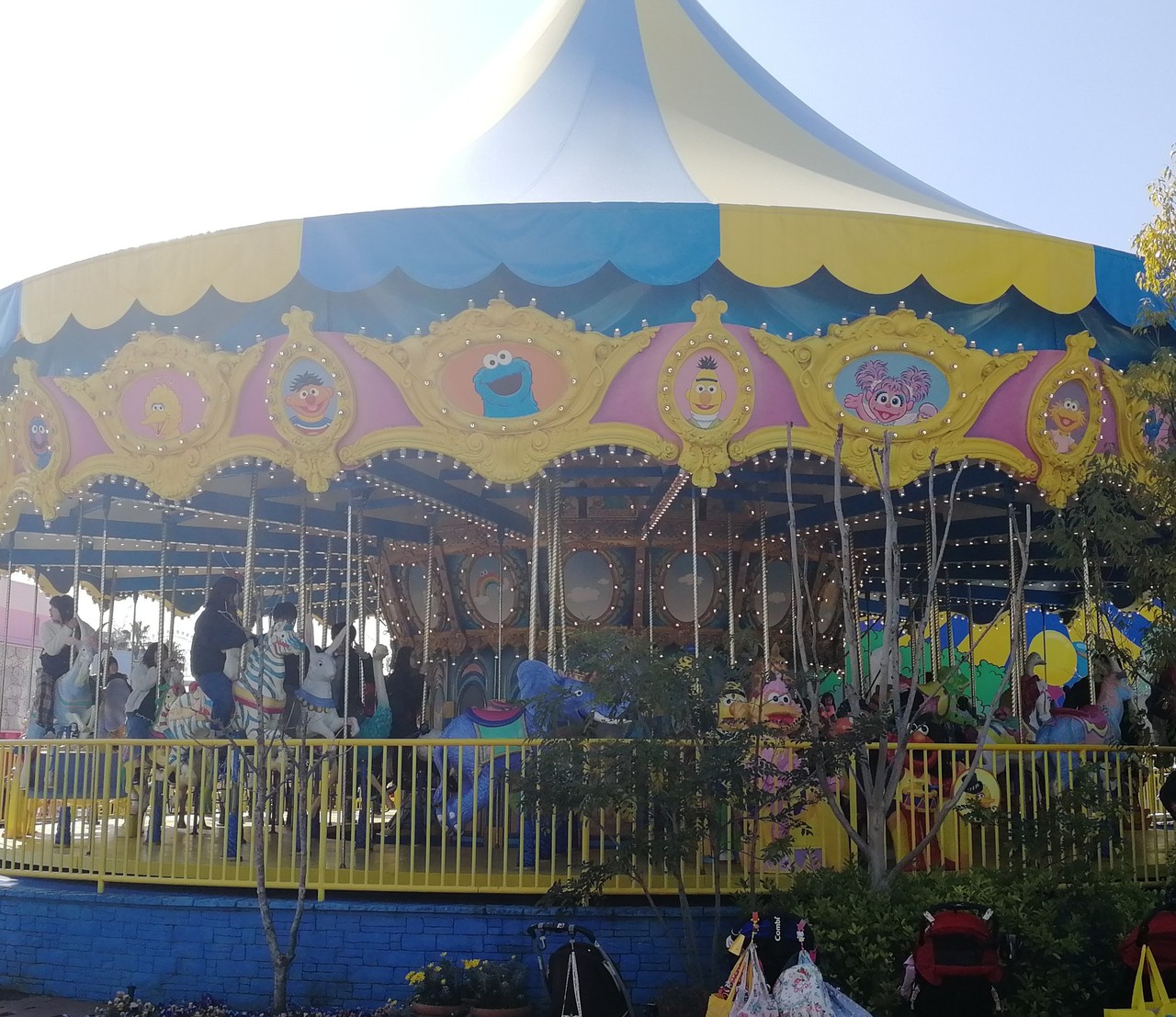 パークの中で子どもが叫んでいるのをいまだによく聞きます。「メリーゴーラウンド乗るー!」やっぱり子どもたちは大好きですね。USJのメリーゴーラウンドはセサミデザインです。ゾウやうさぎもいますよ。色んな動物を制覇するのも楽しいかも