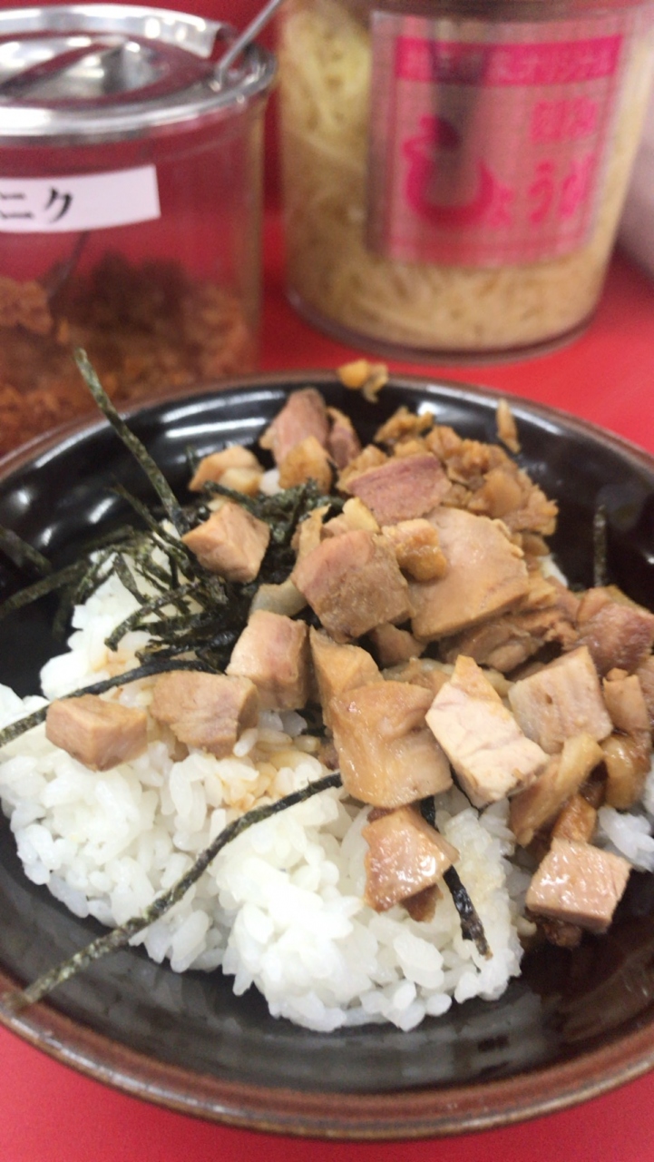 今回はラーメンとチャーシューの乗ったご飯にしました。