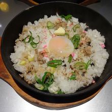 チャーハンは焼いた鉄鍋にご飯がと具材が載っていて自分で混ぜて完成させます。おこげも出来て、いつまでも温かく保たれて良いアイデアだと思いました。
