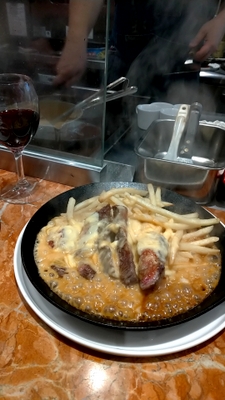 チーズも多く、他の人がみんな注文しているステーキとフライドポテトにチーズがたっぷりかかったものがあったので、私たちもオーダーしてみました。