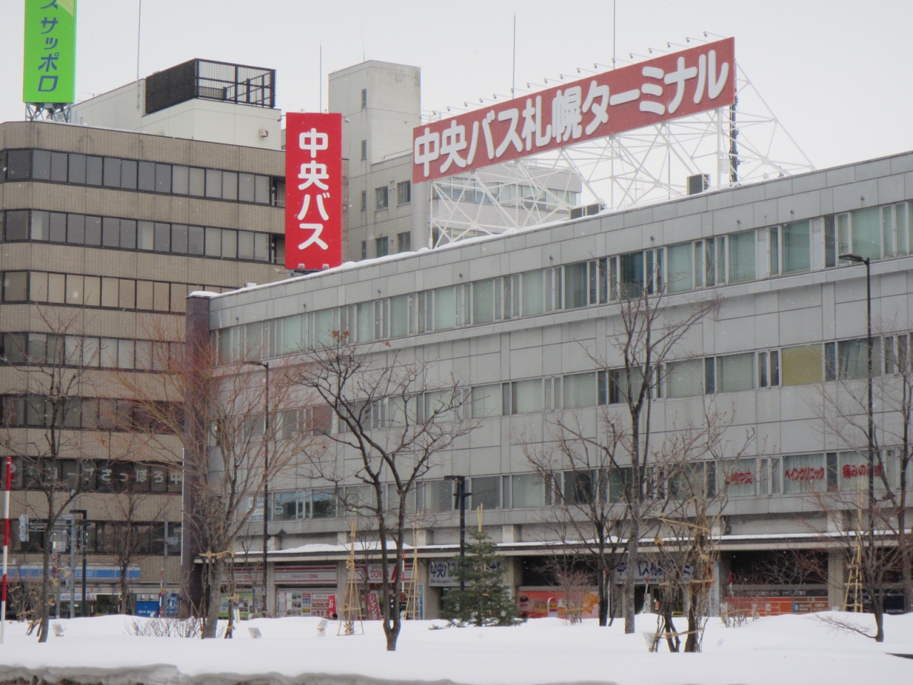 さっぽろテレビ塔の東側の創成川通り沿いにあり、道内各地への中央バスの高速バス(積丹、岩内、余市、北大経由小樽行きなどを除く)が発車するほか、石狩、あいの里方面等の一般路線バスも発着します。 紛らわしいのが、近くにある大通バスセンターで、建物の場所も離れ、バスの行先も異なります。 中央バス札幌ターミナルは、地下鉄東西線「バスセンター駅」からも離れているので、絶対、間違わないように注意が必要です。