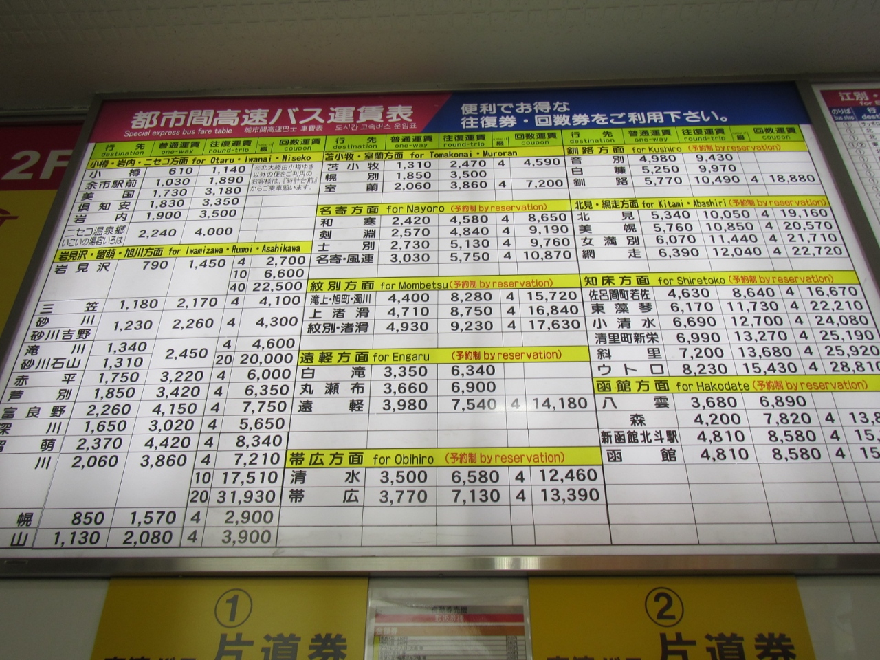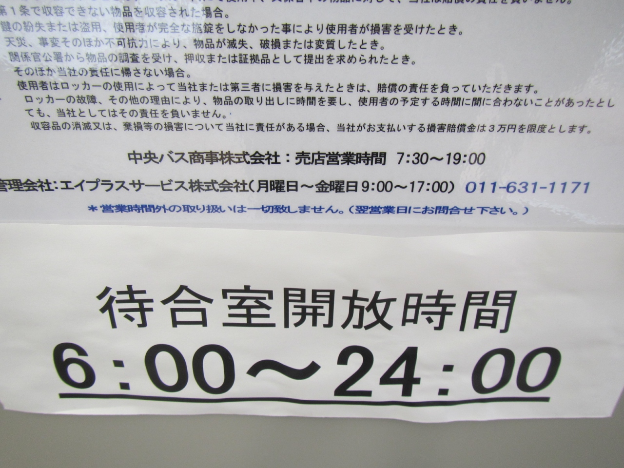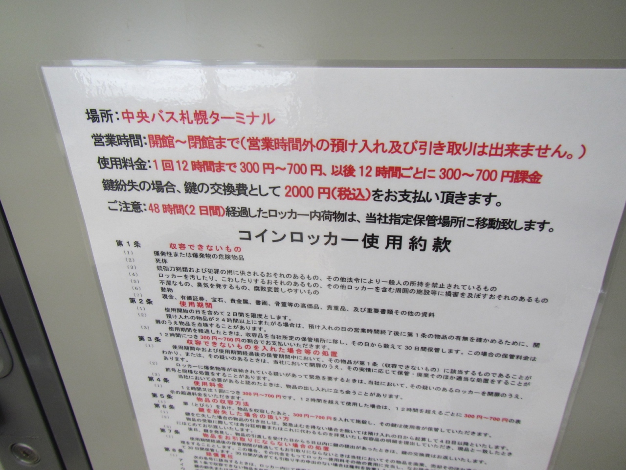 コインロッカーは、¥300円から¥700円/日で2日間を限度(管理会社011-631-1171)としています。