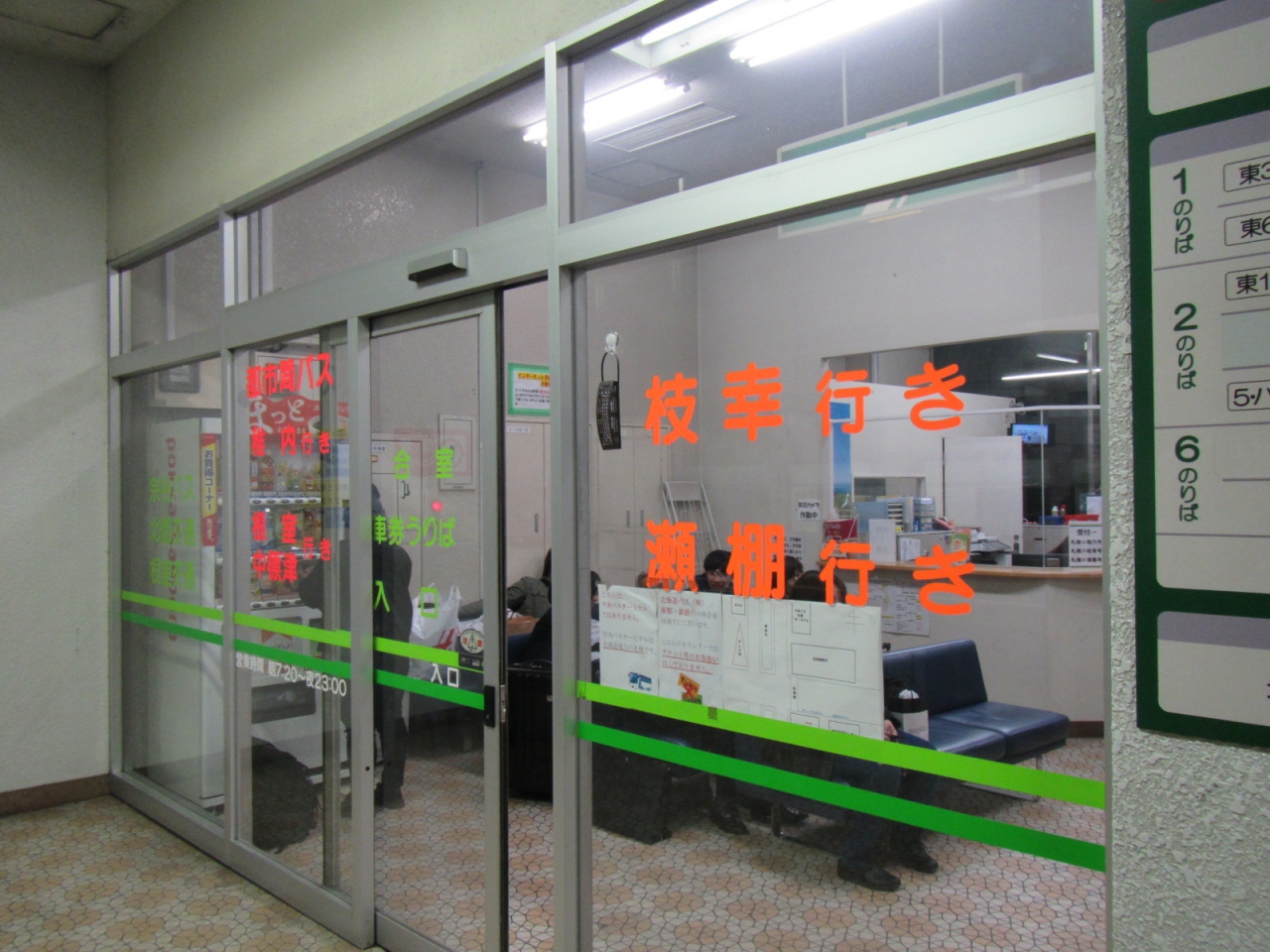 バスセンターには、小さな待合室ときっぷ窓口がありますが、窓口ではクレジットカードは使えないので、使いたい場合は、発車オーライネットや、バスナビ北海道などのWeb上での予約・決裁を行うとよいでしょう。