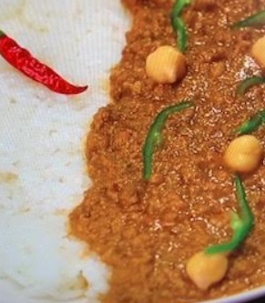 私はキーマカレー 結構辛い が トッピングのヒヨコマメが良いアクセント。