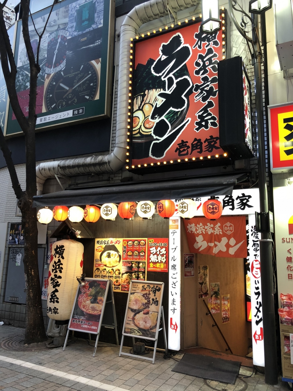 横浜家系ラーメンのチェーン店。都内でもあちこちにありますが、ここ新宿エリアにも多々店を構えています。こちらの店舗はアルタの裏側。出入り口からでるとすぐ目の前です。ビルの1階にあって、階段で降りていきます。間口は狭いですが、店内は思ったよりも広くて、カウンター席の他、テーブル席もありました。ラーメンの特徴は豚骨醤油のスープと太麺。そして海苔が張り付いています。普通のラーメンでもけっこう食べ応えがありました。