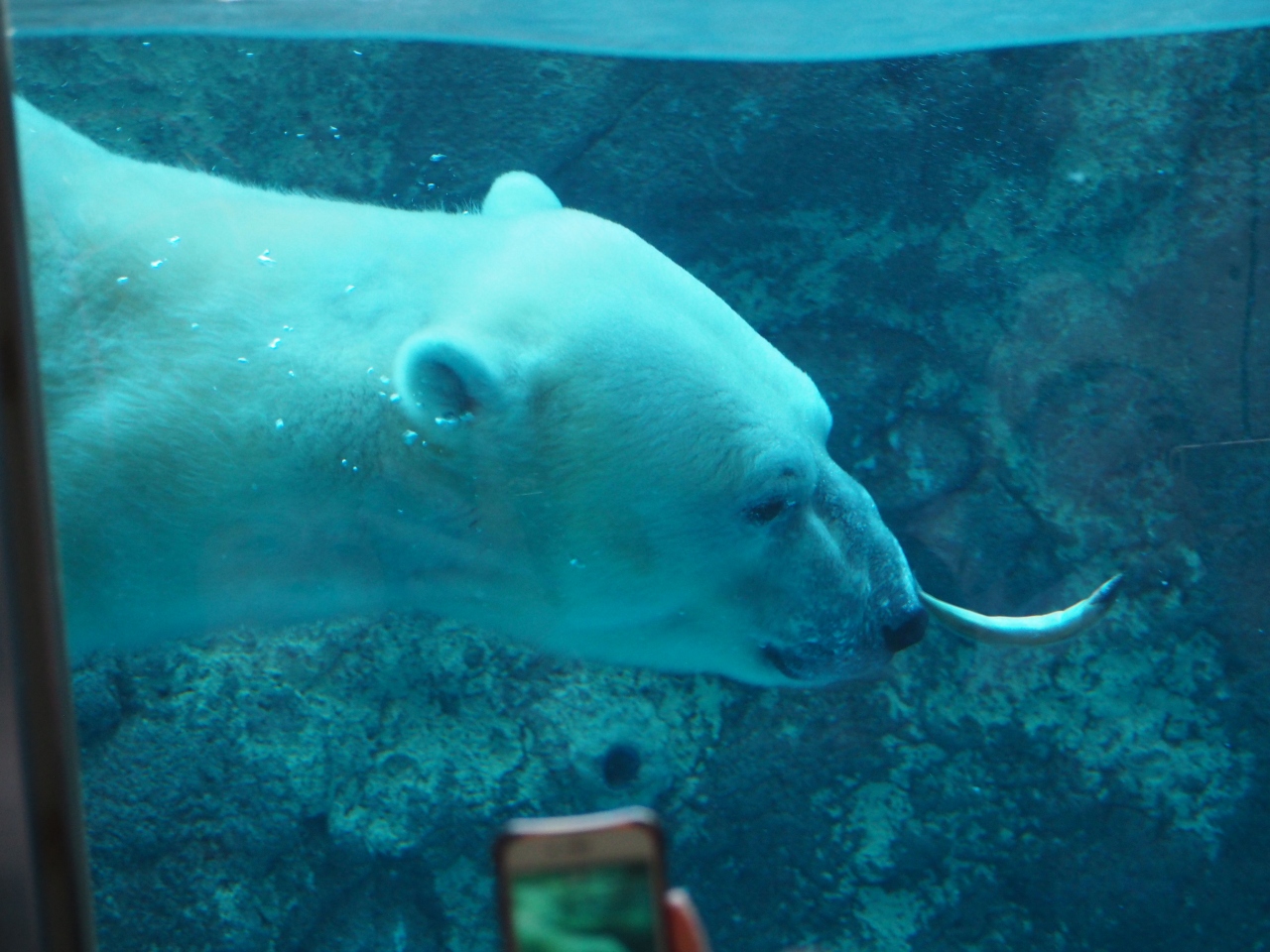 入ると大きなプールがあって、泳いでいるホッキョクグマを見ることができます。