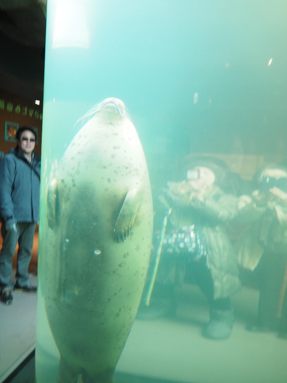 アザラシ館の中に入ると、マリンウェイ(円柱水槽)があります。