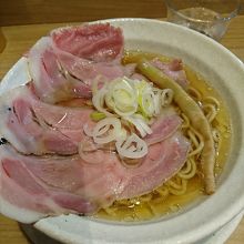 美しく澄んだスープはかすかに牡蠣やしじみの風味。もっちり太麺はほんのり茶色がかって小麦の香りが強かったです。生ハムのようなチャーシューも絶品で普段あまりラーメンを食べないのですがぜったいにまた来ようと思いました。