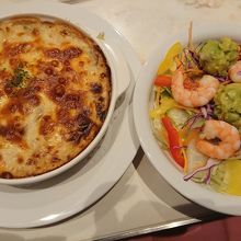 アボカドとエビのサラダ、シーフードドリア、アイスティーを注文