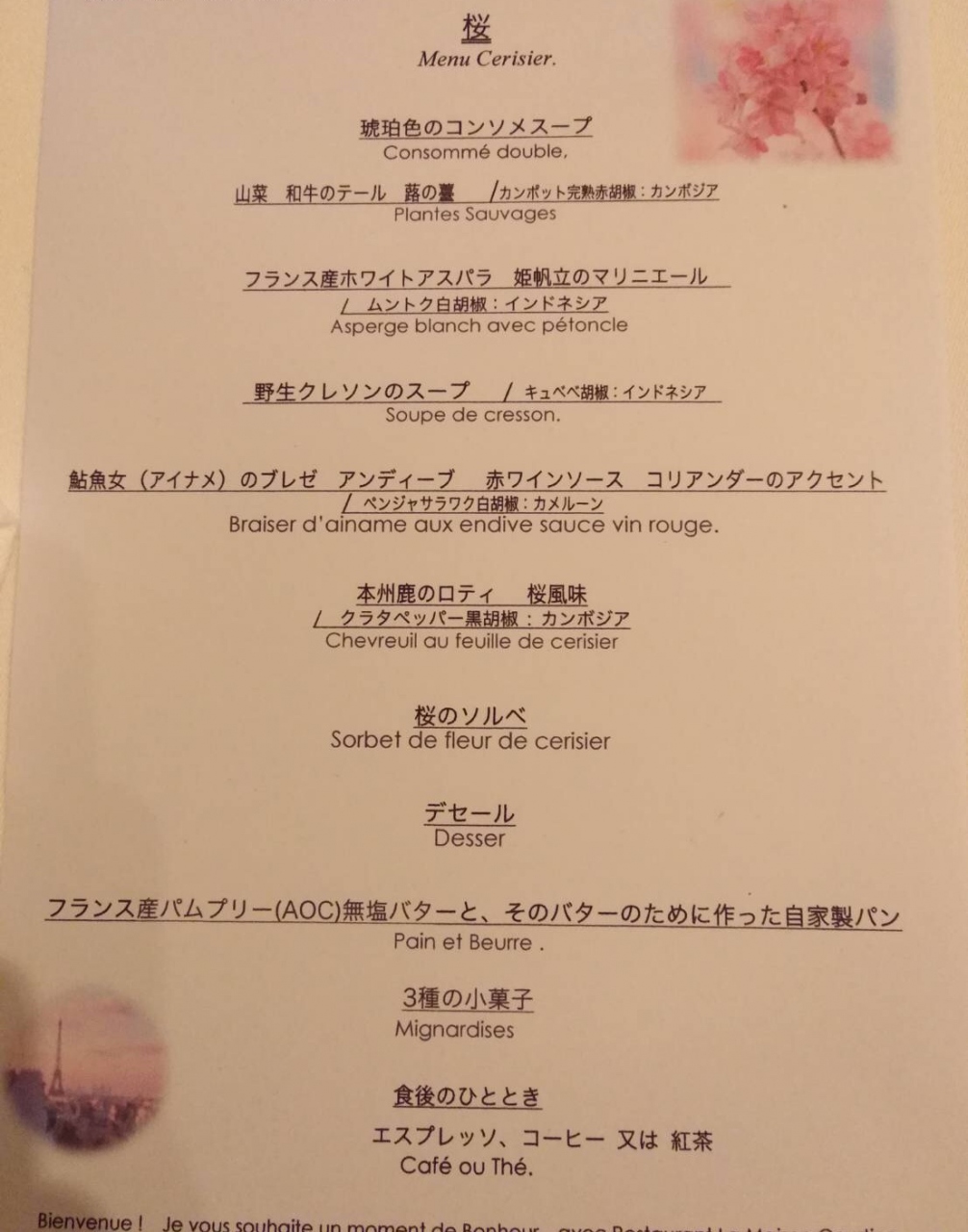 4月の桜コースをいただきました。バースデーディナーとして奮発しました。確かに丁寧なお料理で美味しかったです。ただ、1つ1つのポーションが小さいのでコスパの良さは感じません。これだけの値段を出すなら、東京では他にいくらでも選択肢があると思いました。