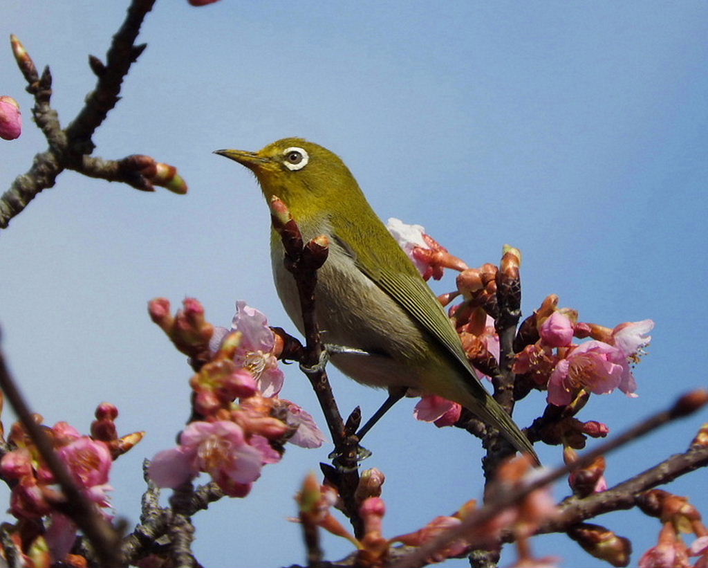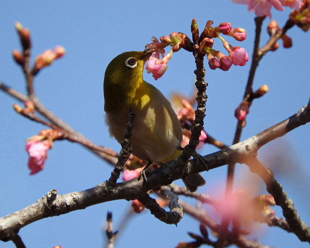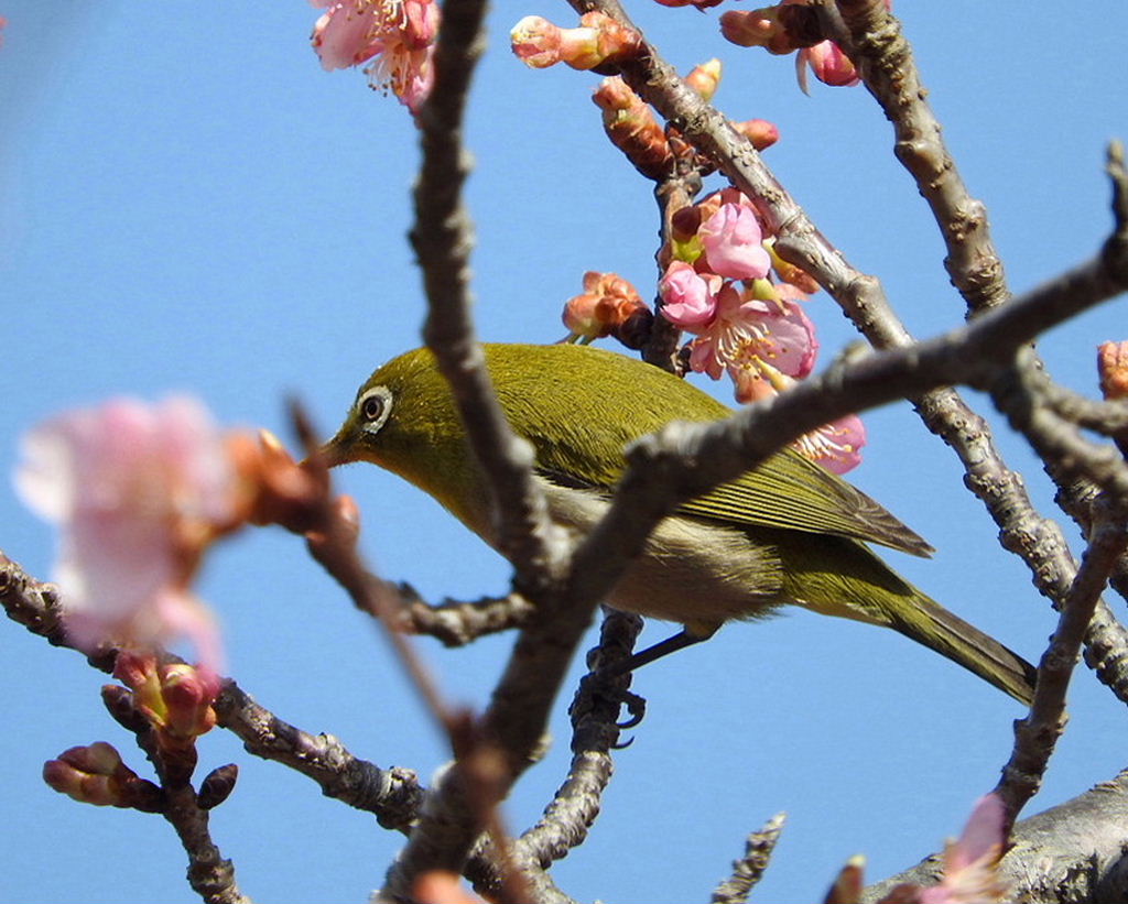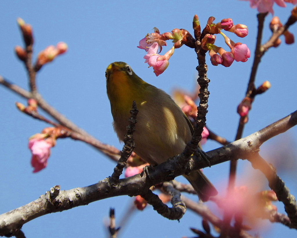 大膳池の河津桜はまだ樹齢も若く、それほど見栄えがする程では無いのですが、メジロちゃんが大好物の蜜を求めて飛び回っていました。もう少し桜の樹が成長すれば、絶好の花見ポイントになると期待しています。