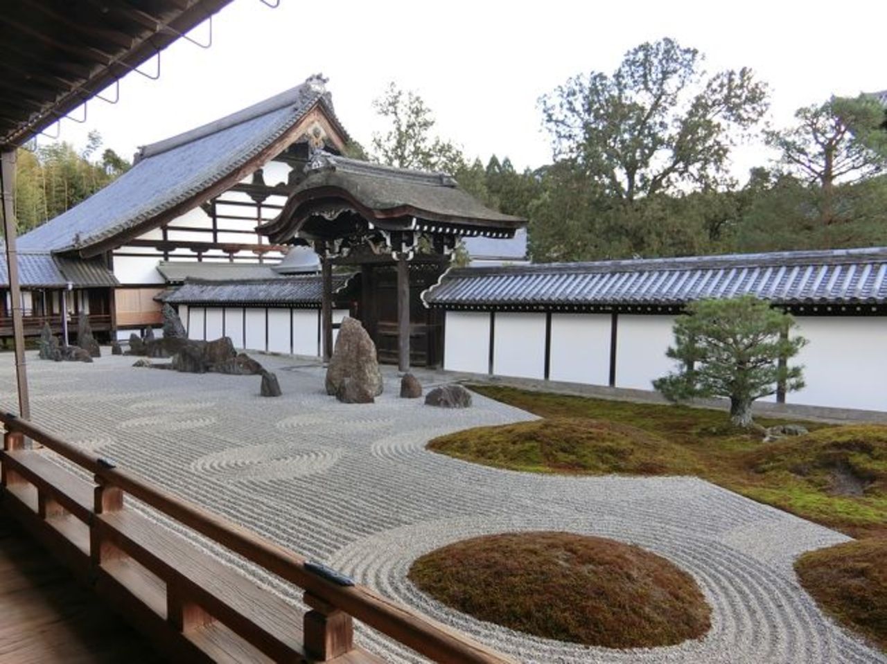東庭の写真を撮るのを忘れましたが、南庭の砂紋や、苔の緑と敷石が市松模様となっている北庭は、特に素晴らしいです。