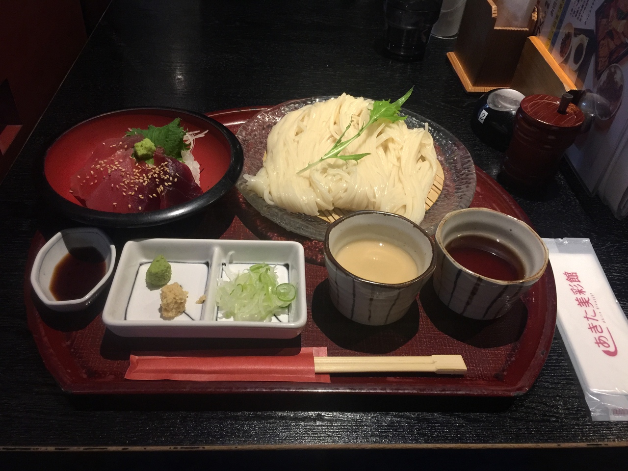 食べたのは稲庭うどんとミニ鉄火丼セット1,500円!稲庭うどんは喉越し良く美味しかったです(^ ^)