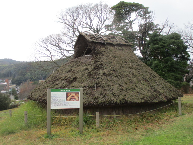 ゆーゆの裏の高台にあるので、眺めがいいです。それだけではなく、こちらには、復元古代家屋が戸外に展示しています。それが、家屋の上の部分だけなので、屋根の部分がアップで見られます。藁ぶきの屋根はこんな風なのかと近くで見れてよかったです。
