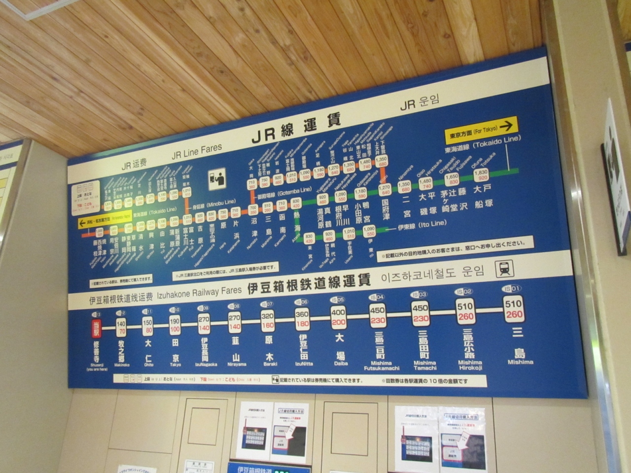 三島駅までは40分弱の¥510円です。フリー切符なども販売しているようです。
