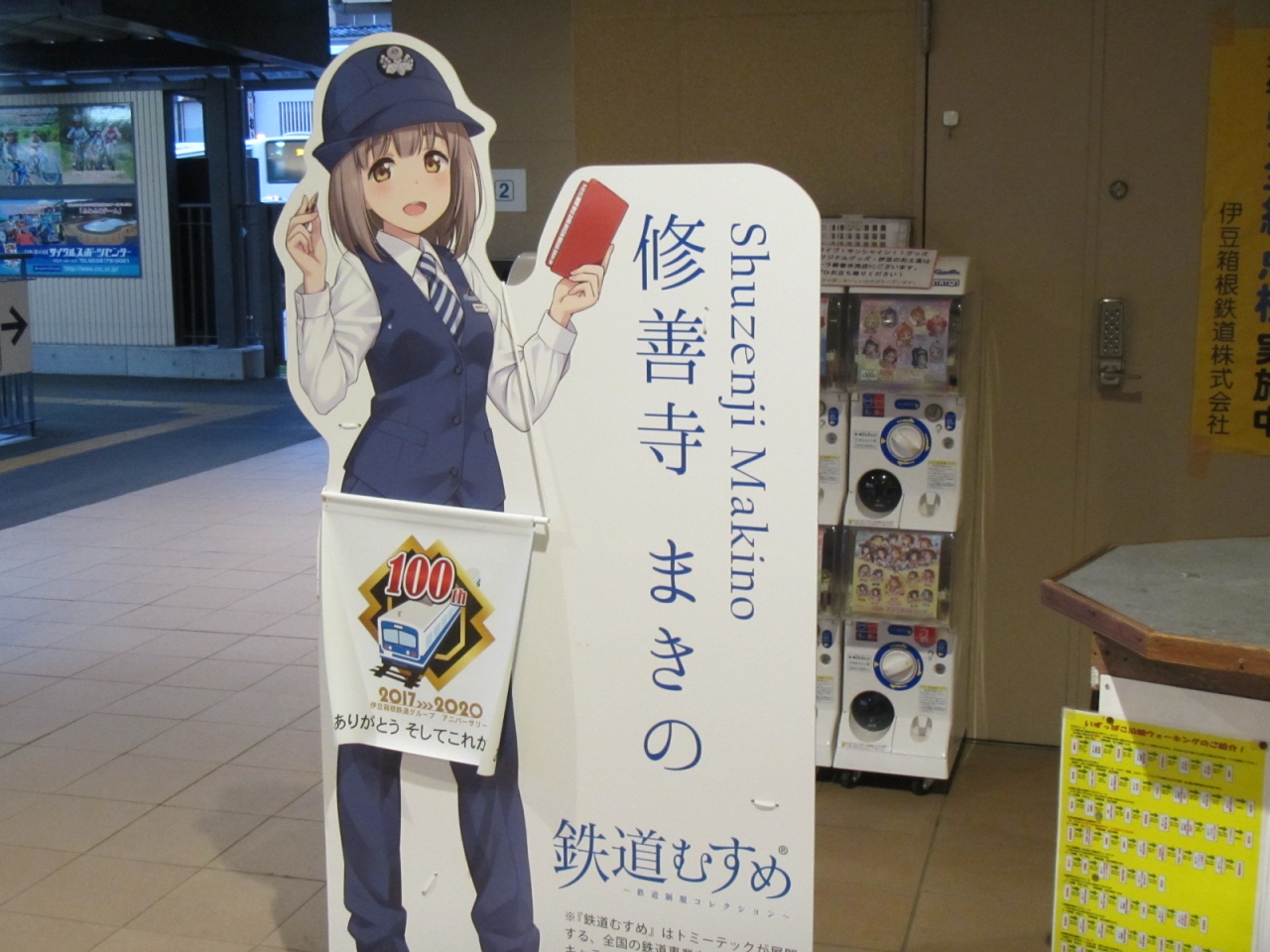 駅改札内にはアニメキャラクターのガチャがあったり、イズーラでは希望するとレジ袋をキャラクター仕様に変えてくれたりするなど、伊豆箱根鉄道のいろいろなキャラクターがあり、目当てで訪れている人もいるようでした。