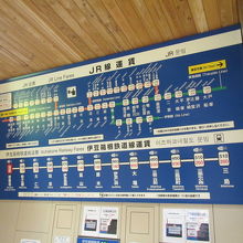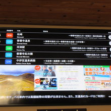 新しくきれいな駅で、駅構内には駅窓口のほかに観光案内所(9時-17時15分)、セルフの軽食堂併設のお土産屋(イズーラ・9時30分-18時)、コンビニ(セブンイレブン)、駅弁を出している寿司屋(9時-16時・水曜休)、トイレなどがあります。