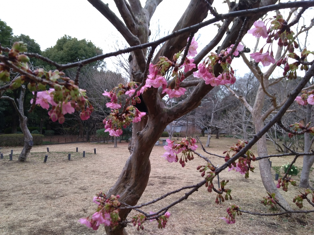 武道館のすぐ近くにある北の丸公園では、寒桜や河津桜が植えられていて、2月からほんの少し咲いていました。冬の平日夕方は人もほとんどいないです。そのため、熱心に桜の写真を撮られている方もちらほら見受けられました。