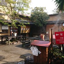 ここには、砂湯と露天風呂、お食事処、貸切家族風呂があります。
