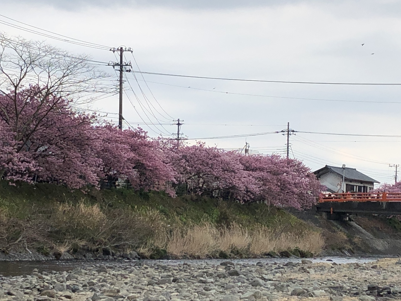 初めて河津桜を見に行きました。まさに満開前の8分咲き。お祭りは出店もでて、夜はライトアップもされて、賑わっていました。橋を渡るのも人々。でも、思った以上にピンクの桜は美しく、感動できました。桜の見える旅館に泊まりましたが、ライトアップは夜10時までなのに駐車場には夜の9時でも駐車待ちの列ができていて、朝は6時には駐車場に入る車が。7時にはすごい人と車でした。朝10時過ぎに七滝にむかったのですが、河津方面はもう渋滞していて、観光バスを含め、いつ到着するのだろう、引き返したほうがいいのでは?と思うほどの混雑でした。ピークの土日に行くなら、朝の6時か7時に到着するように行くことをお勧めします。