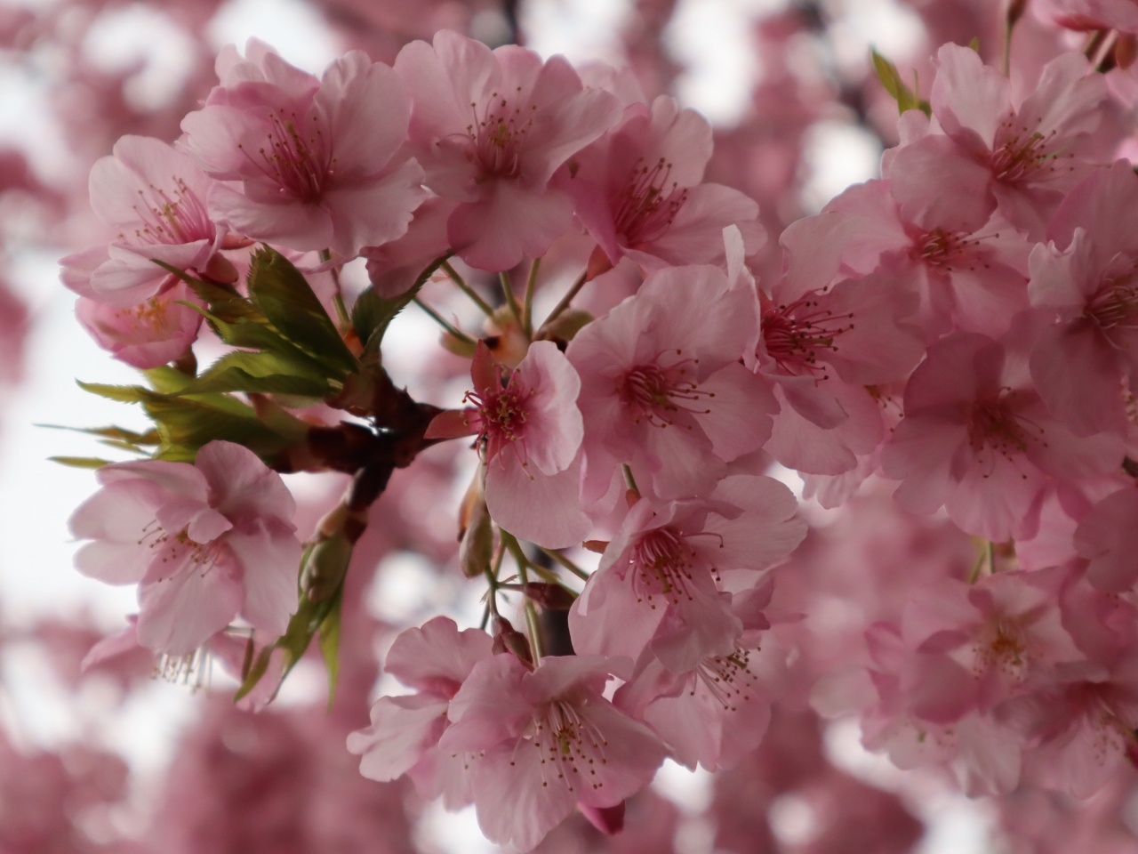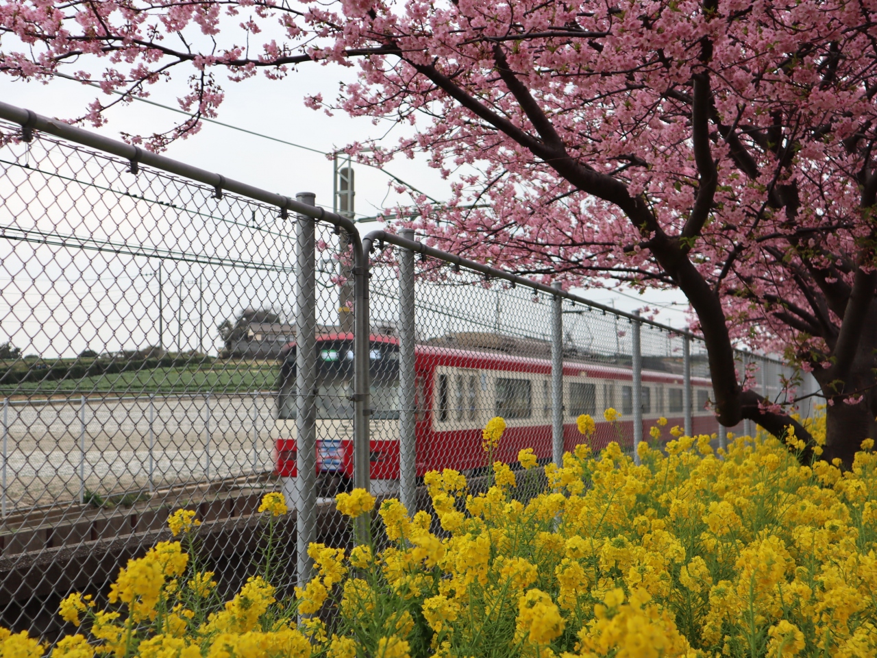 河津桜は伊豆まで行かなきゃ見られないと思っていたら、横浜から京急快特に乗って580円(Suicaならもっと安い)で行ける三浦海岸駅の線路脇周辺でも、それは見事な河津桜が見られます。
