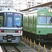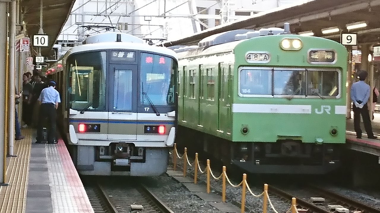 京都~奈良を結ぶJR西日本の路線。しかし、実は、京都~木津が奈良線で、木津から先は関西本線なので、正式には京都府内しか走っていません。もともとは奈良鉄道としてして開業したものの、木津~奈良間は関西本線に編入されたためとのこと。しかし運用は基本的に京都~奈良間で、昼間の京都発は奈良行みやこ路快速2本、奈良行き普通2本、途中の城陽行き2本で分かりやすい。伏見稲荷や宇治平等院など観光名所には、京阪を利用するよりも便利で、外国人の利用もよく見かけます。しかし、京都から奈良に行く場合は、近鉄線利用の方がメジャーかも。通勤客の利用の多い京都から城陽までは2023年までに複線化工事が行われているものの、全体の半分以上は単線区間で、風景ものどかな地域を走る印象。しかも、普通電車の多くは国鉄時代に投入された103系や、JR発足後に導入された205系なので、他のアーバンネットワークの路線とはやや時間の趣が異なり!ゆったりした印章も受けます。ファン的にも楽しめる路線です。