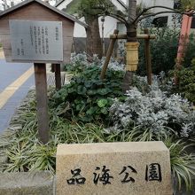 旧東海道沿いの北品川商店街にある細長い小さな公園です。品川宿の松や品川宿の石垣石などが入口付近にありましたが、これと言った特徴がある公園ではなかったです。かつて、この辺りは海だったようですが、その面影もなかったです。