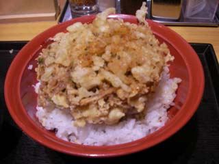 神保町駅の交差点の近くのいわもとQ神保町店があり狭い店内に小さく区切られた席になっていて、ソバと丼のメニューがどれも安く、かき揚げ丼の食券を買って、奥の厨房に出すと5分ほどで出来上がり、生玉子1個無料でセルフサービスの蕎麦湯があります。