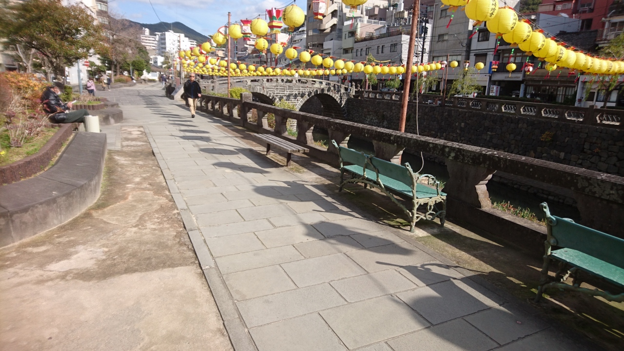 長崎市に旅行したときに眼鏡橋がある中島川石橋群に行ったときに中島川公園がありました。中島川に沿って整備されていて、公園からは中島川石橋群を見ることができます。また、公園にはベンチが数多くあったので、休憩するのに最適です。