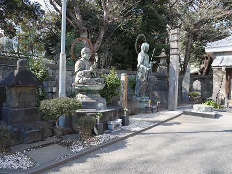 西日暮里駅より坂駅を登りしばらく歩くと諏方神社が有りその直ぐ横に立派な山門が建っています。そこが浄光寺で山門の脇には説明板が立てられていて読んで見ると当時は雪見寺とも呼ばれ空無上人によって開眼された江戸六地蔵の3番目とされる地蔵菩薩像が立てられています。