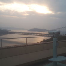 バスが展望台に着いたのがレストハウス営業時間終了の10分位前、お土産を買いたくて入りました。ぱっとしたお土産も無かったのですか、それでも何か買いたくて見ていたら、女性店員がもう閉めます...の一言。あわててその場にいた数人の客がレジで支払いをしました。商売っけがないです。展望台は瀬戸大橋が一望出来て行く価値大です。