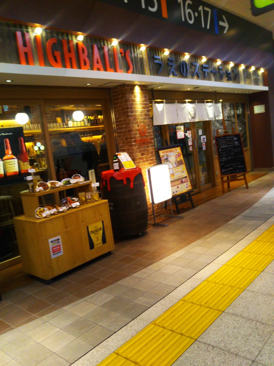 JR上野駅の構内にあるパブレストランです。ハイボールやビールをソーセージやアヒージョなどをつまみにいただけます。ジムビールハイボールはキンキンに冷えたソーダとジョッキでガツンと爽やかなのどごしでおいしかったです。