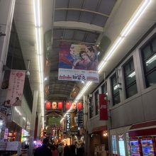 アーケードが続いており、商店街はほぼ飲食店が軒を連ねます。