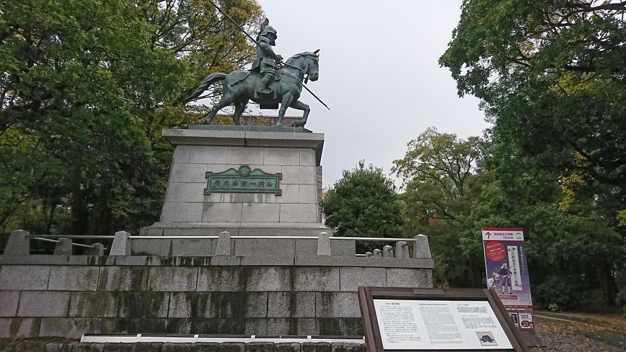 関ヶ原の戦いの功績により徳川家康から土佐一国を拝領し、高知城を築城した山内一豊の銅像は高知公園にあります。