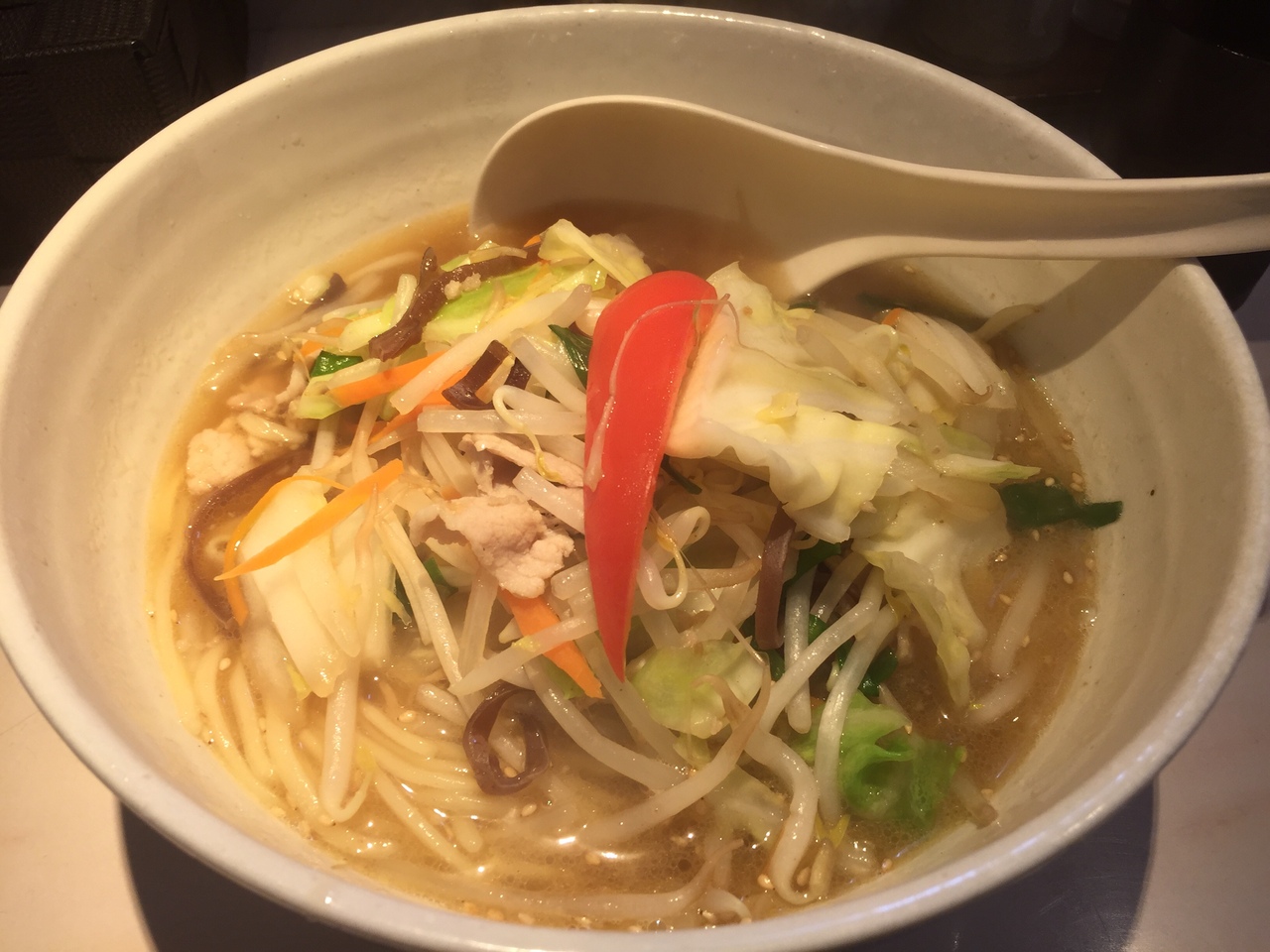 池袋でいちばん好きなラーメン屋さんです。定期的に訪れています。塩も醤油も味噌も美味しいのですがこの日は醤油をチョイス。タンメンらしい豊富でシャキシャキした野菜と、ラーメンらしいしっかりしたスープにこの日も大満足です。