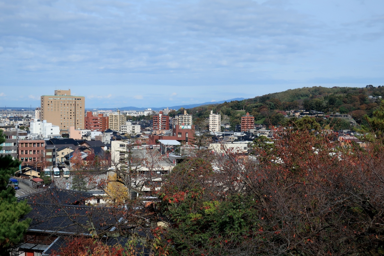 兼六園の名は、名庭に必要な六つの要素を備えている、という意味だ。さらに六勝は二つずつ三対の要素で構成される。そのうち一つの対が「眺望」と「水泉」だ。水が流れる低いところは眺望がよくないというのが通り相場だが、兼六園ではそれを両立させている。それを立証しているのが、この眺望台だ。唐崎松近くにあり、卯辰山を背景とする金沢市内を展望できる。この庭を造った人々はこの眺望を得るためにまずこの地を選び、さらに「眺望」と「水泉」を両立するために辰巳用水による水の調達に知恵を絞り、技術を尽くした。そんな感じがしてならない。