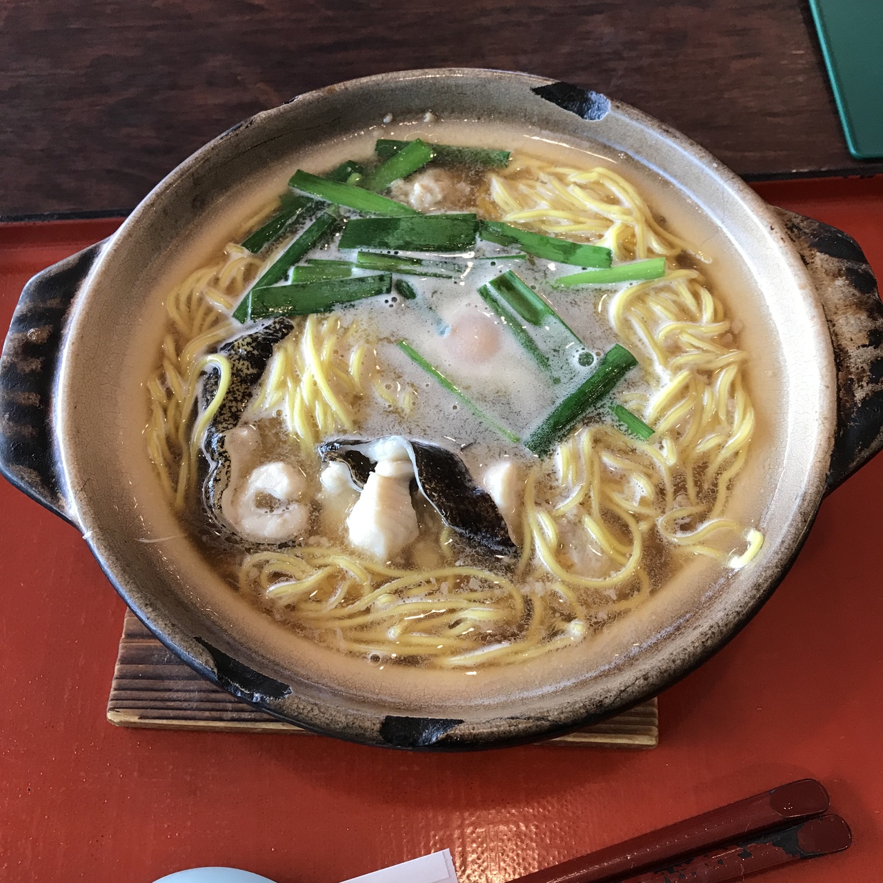 須崎名物の鍋焼きラーメン、ウツボ入りのを注文。