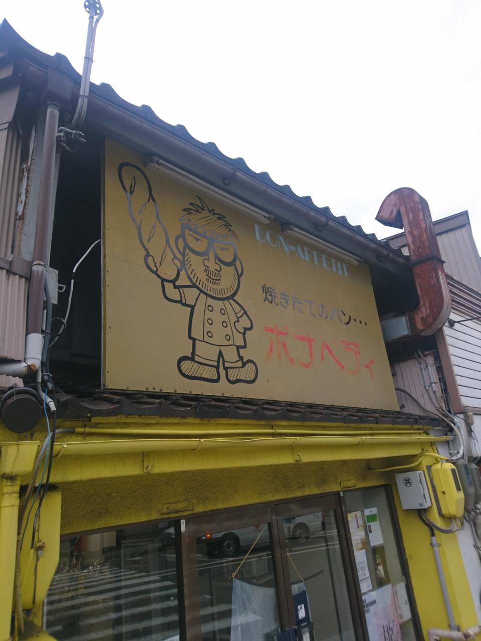 金沢の一大観光名所ひがし茶屋街に行く際に使うバス停橋場町の向いにある渋い佇まいの街のパン屋さん。看板テントの汚れぐらいから相当昔から営業していると思われる。風致地区を歩いての見物終わって小腹がすいたのでパンを食べたくなった。