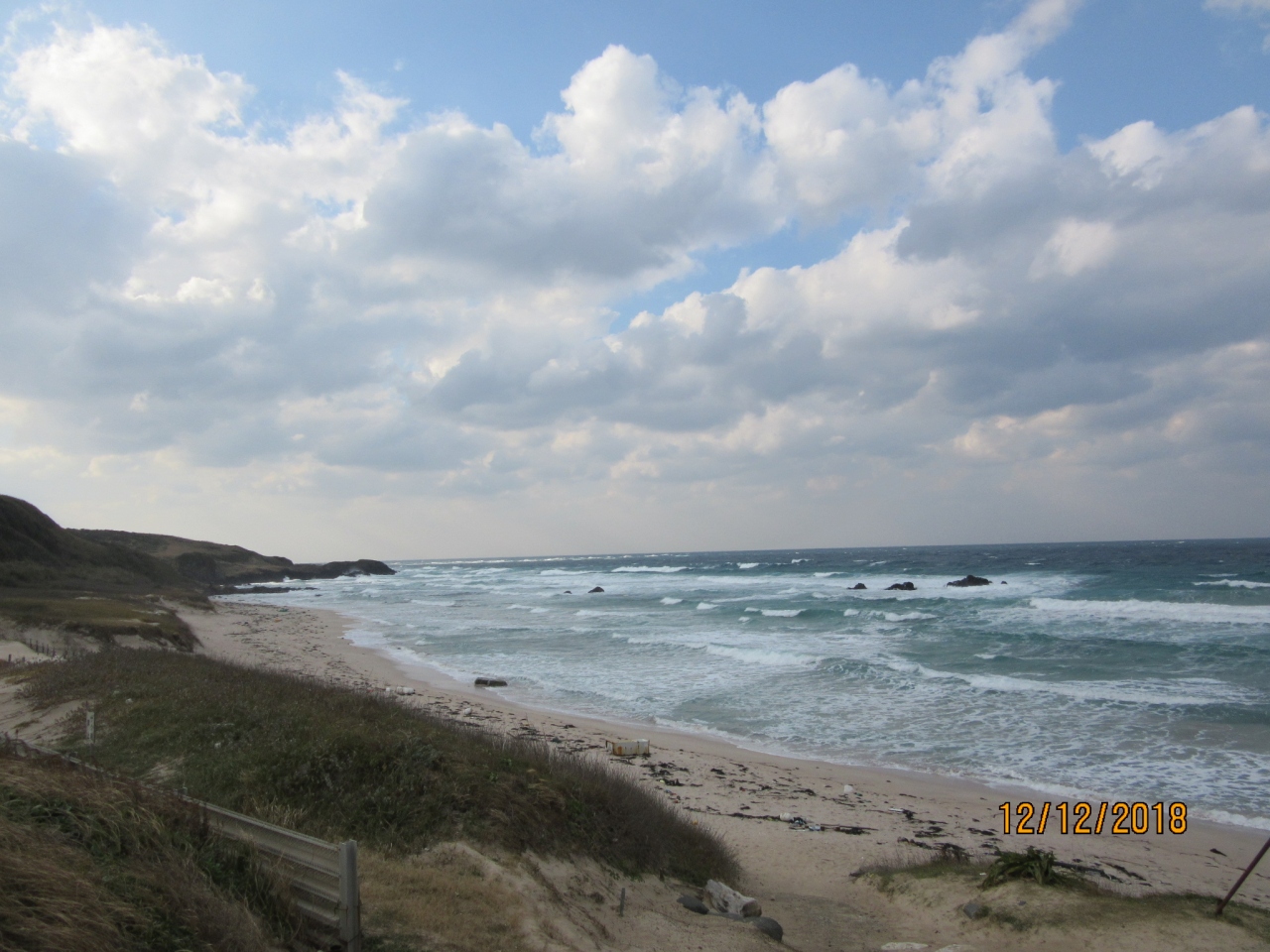 海岸線の道路を角島灯台から小学校まで歩いた。