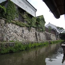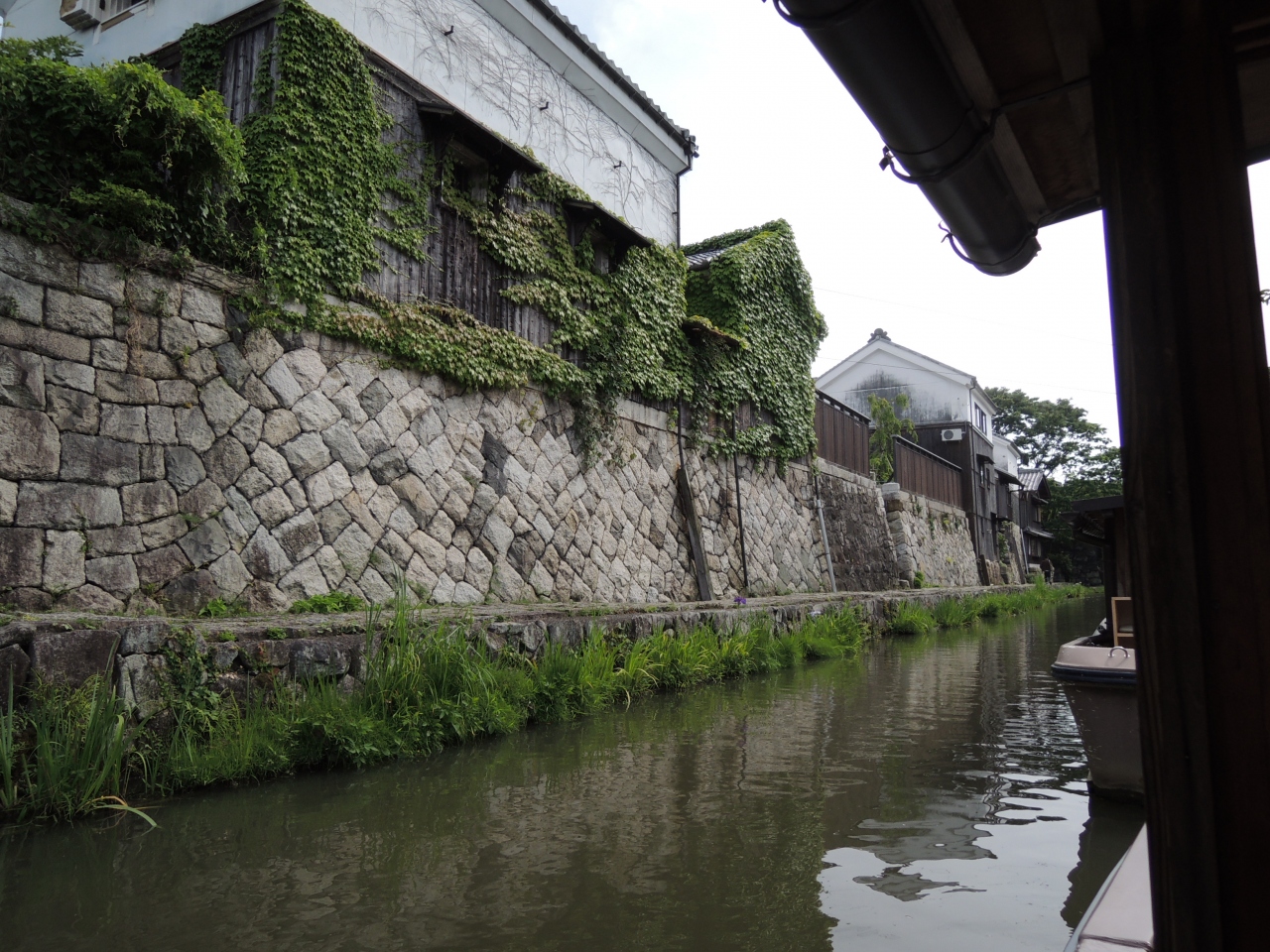 八幡堀を船で観光するコースです。船頭さん付きのアナウンスが流れる小舟でのんびり川面に揺られて楽しいひと時を過ごすことができます。お堀の川面は決して綺麗とは言えないですが、その高さから見ることのできる石垣や草花、町並みの面白さがそこにはありました。