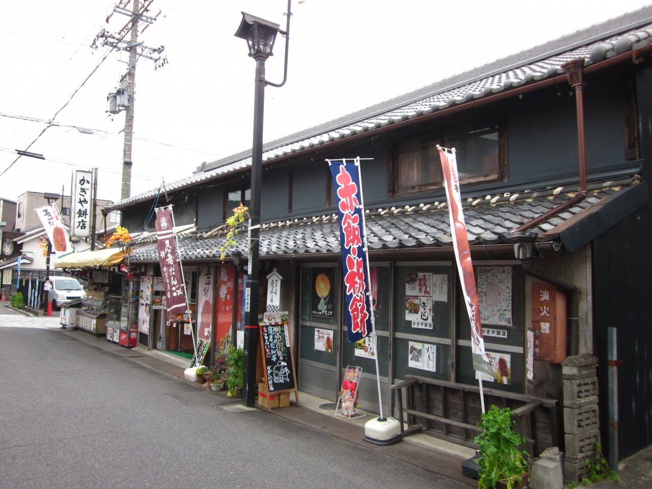 中之立町通り沿いに一際目立つ賑やかな幟は「かぎや餅店」~、カラフルな幟に赤飯や祝餅など書かれているので直ぐに判りますよ。