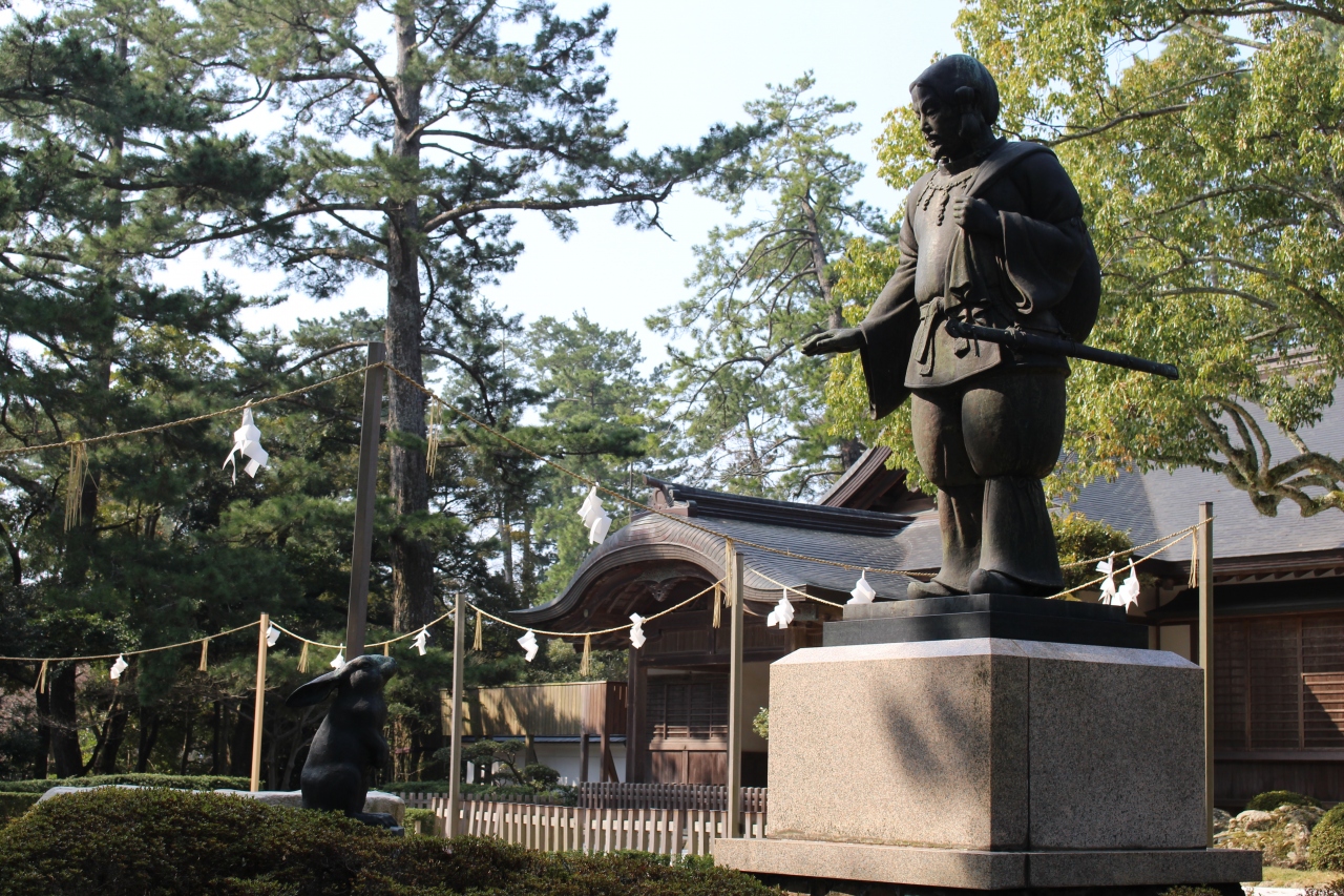 島根県の人気観光スポット、出雲大社の敷地内にある必見スポットです。出雲大社の神、大国主大神と兎、神話の因幡の素兎をモデルにした銅像が立っています。傷ついた兎に手を差し伸べている場面を表しています。おだやかですべてを包み込むような大国主大神の表情に癒されました