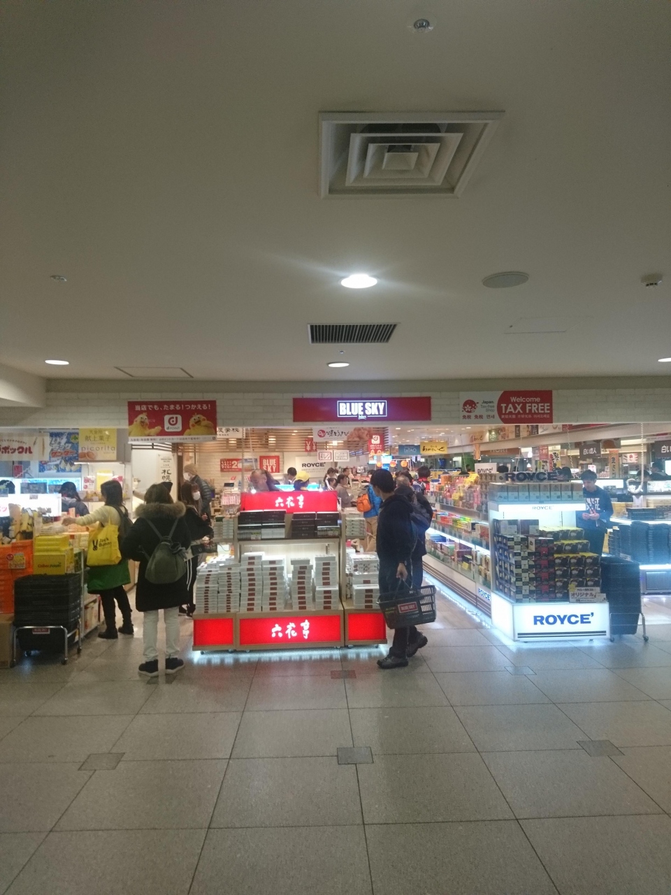 新千歳空港のJAL系の土産物店。JALカード会員は割引優待が適用される。ただし一部商品は対象外となる点は注意。新千歳空港にはこのロビー店以外に、ゲート内にも同系の小さな売店もあるが、そこで扱っている種類は少ない。