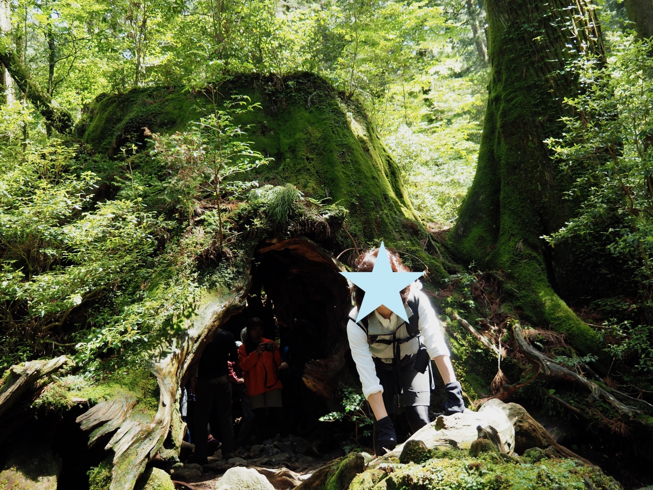 荒川登山口を出発して約4時間ほどで樹齢約3000年の屋久杉の切り株、ウィルソン株にたどり着きます。