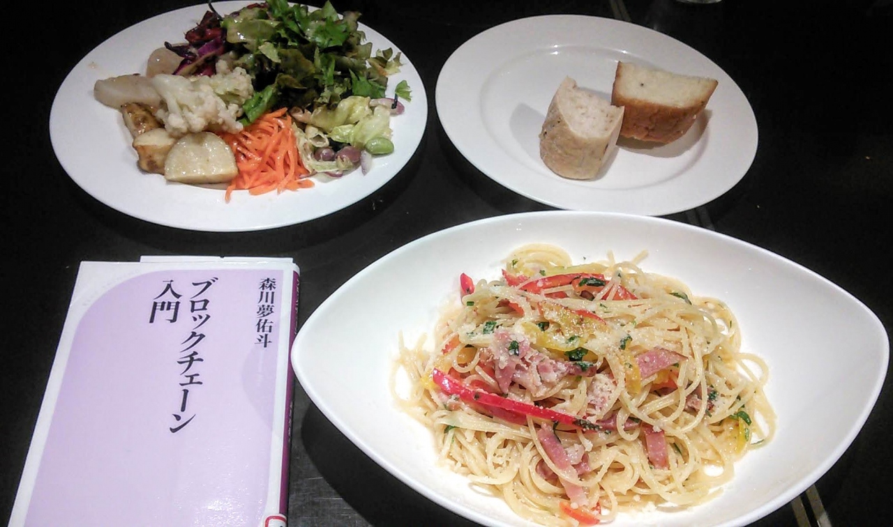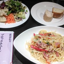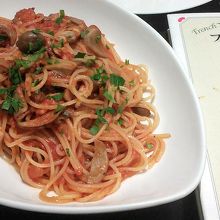 有機野菜が自慢のイタリア料理店です。ランチはパスタか、魚料理、肉料理で、どれを選んでも新鮮なサラダビュッフェが付きます。自家製フォカッチャやバケットも食べ放題です。アサリときのこのトマトソーススパゲティと、ベーコンとパプリカのアーリオ・オーリオをいただきました。ドリンクは別料金です。